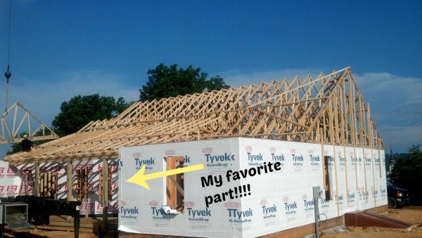 Much to the hubby’s chagrin, I insisted on the very last-minute change (We literally called the builder as they were framing the walls) of adding french doors from our master bedroom to the pool/back porch area. Eddy thought they were unnecessary and it was a little expensive, but I think we’ll really like having them and they will add a lot more natural light. They’ll also be practical when he comes in all filthy from doing yard work or when the kids are done in the pool-everyone can just go straight to the big tub in the master bath without dragging their yuckiness all over the rest of the house.