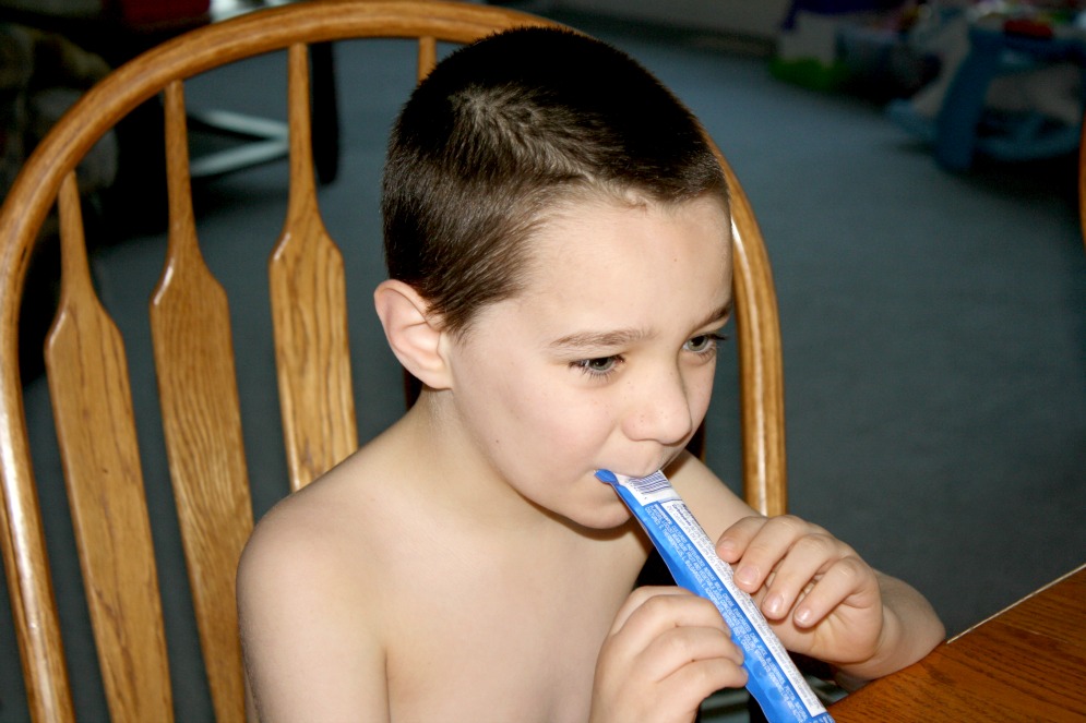 Chobani sent us a few yogurt tubes for the kids to try and Nicholas really liked them. I put some in the refrigerator and some in the freezer. They make great substitutes for popsicles.