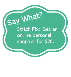 Stitch Fix is a new company that is like an online personal shopper. You sign up and fill out a style profile and use Pinterest to give them an idea of your personal style, then for $20 they send you a box of 5 items, clothes or accessories, selected based on your personal style.