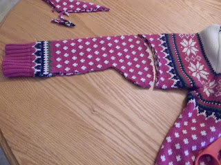 Our GW doesn’t have a dressing room. This is a Land’s End sweater marked medium that was in the women’s section. I assumed that meant women’s medium (my size) & I threw it in the cart. Um..it didn’t. It meant child’s medium. Oops. To the re-purposing pile it went. Good thing it was only $3.50.
