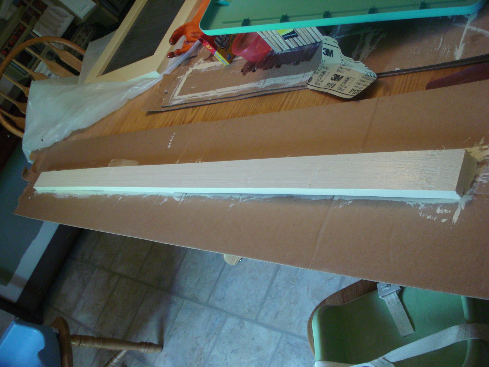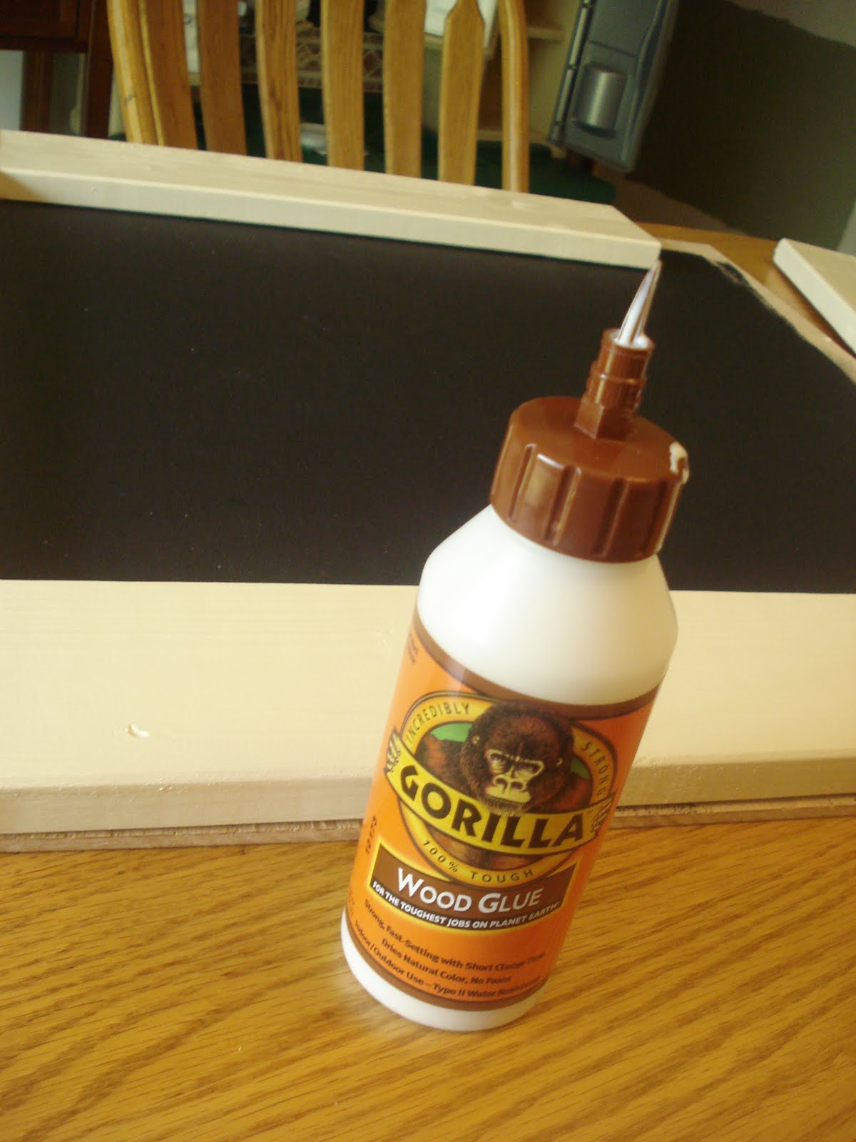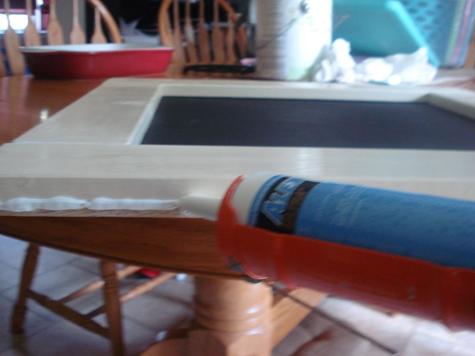 Tomorrow prep your chalkboard surface by rubbing the side of a piece of chalk all over it and using a rag to rub all of that chalk in really well. (That’s supposed to make it erasable.) My can said to wait at least 3 full days before doing that.