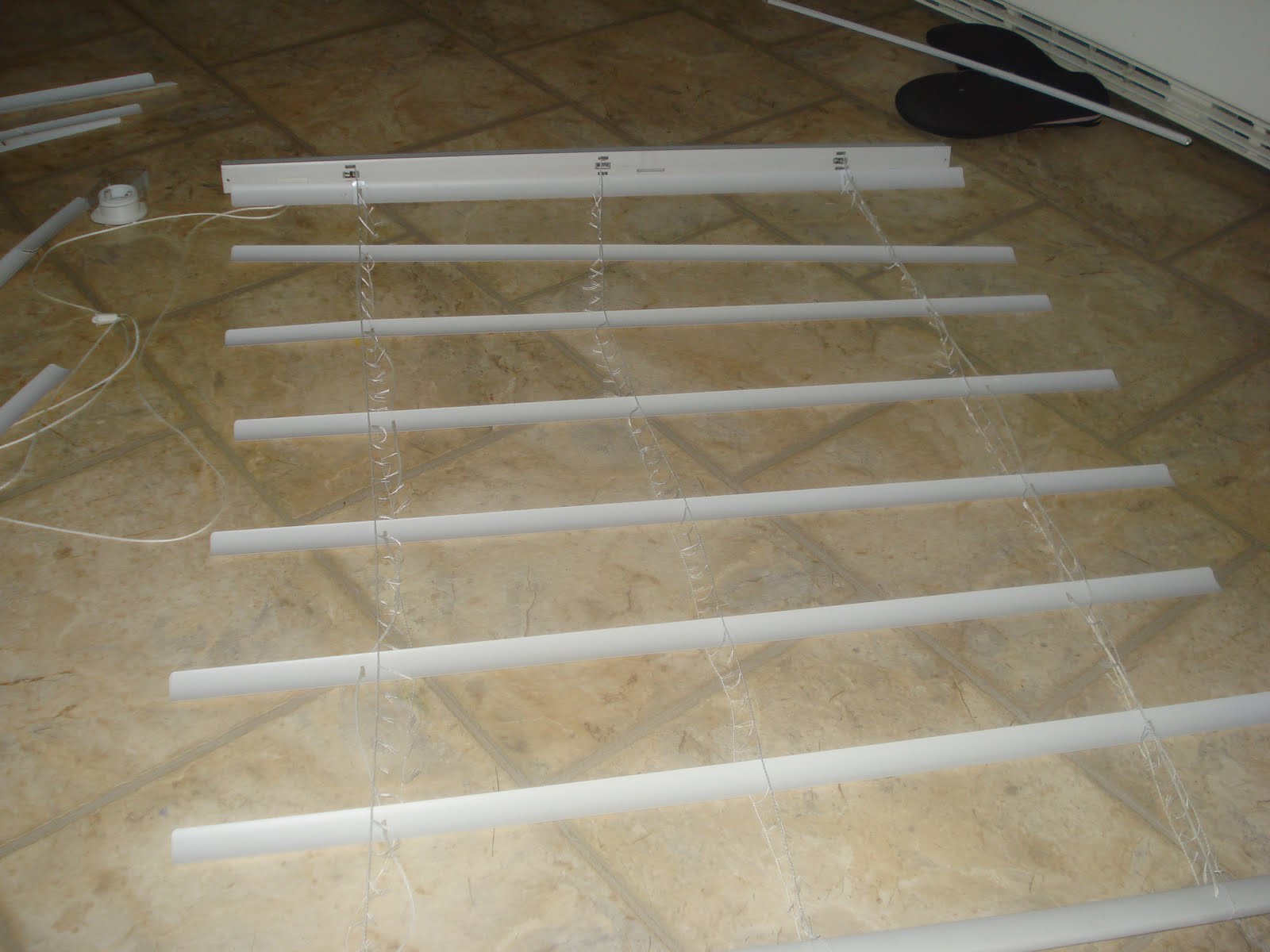 Step 4: Remove unneeded slats and the string that spaces them out. Keep the string that runs through the middle, the pull string.