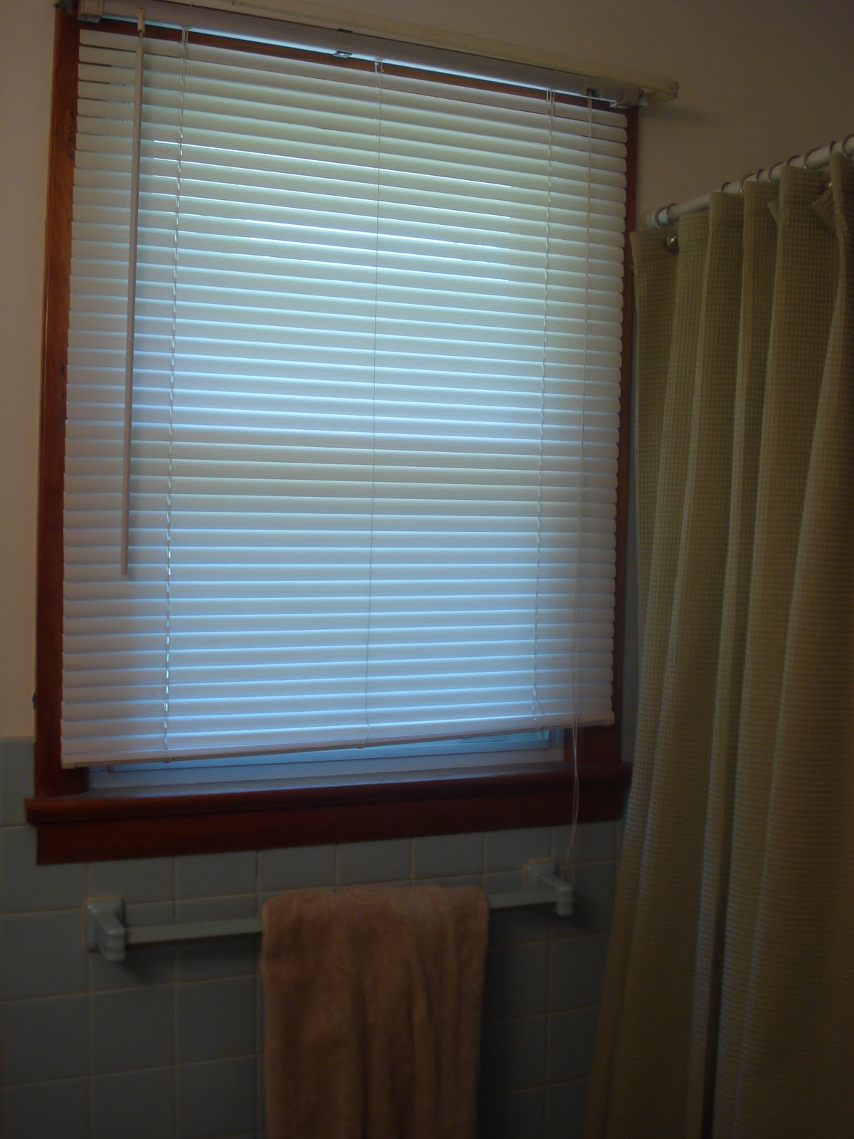 I recently saw a few blog posts from women who have been turning the mini blinds in their homes into Roman shades. I have been wanting a new window treatment for the bathroom for quite a while, so I decided to try it.