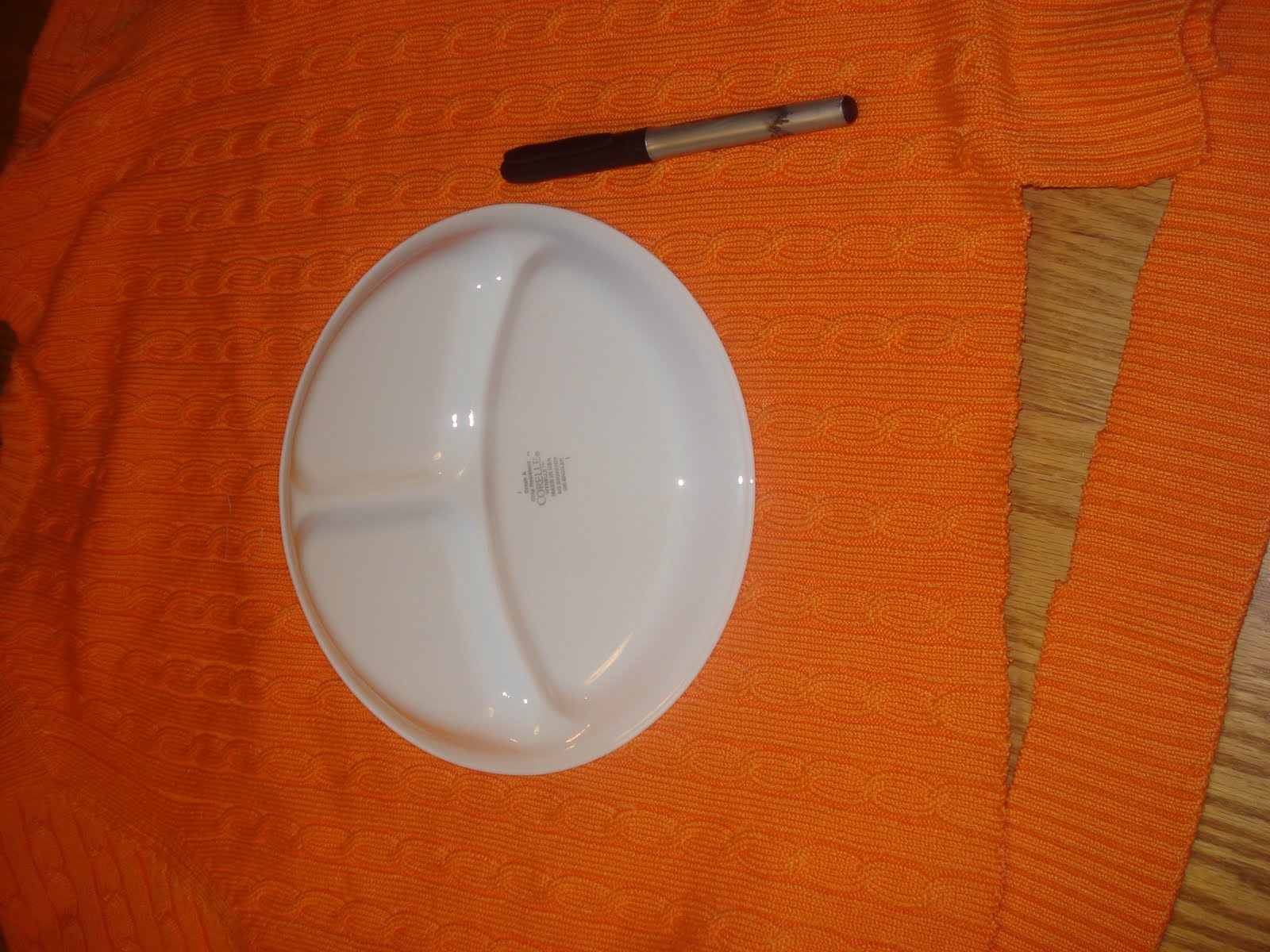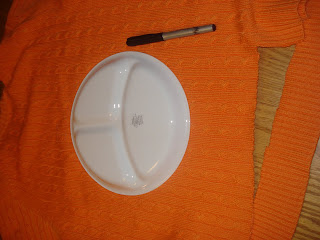 Next, trace a plate to get a perfect circle. Use a dessert plate for small kids and a regular plate for bigger kids or adults.