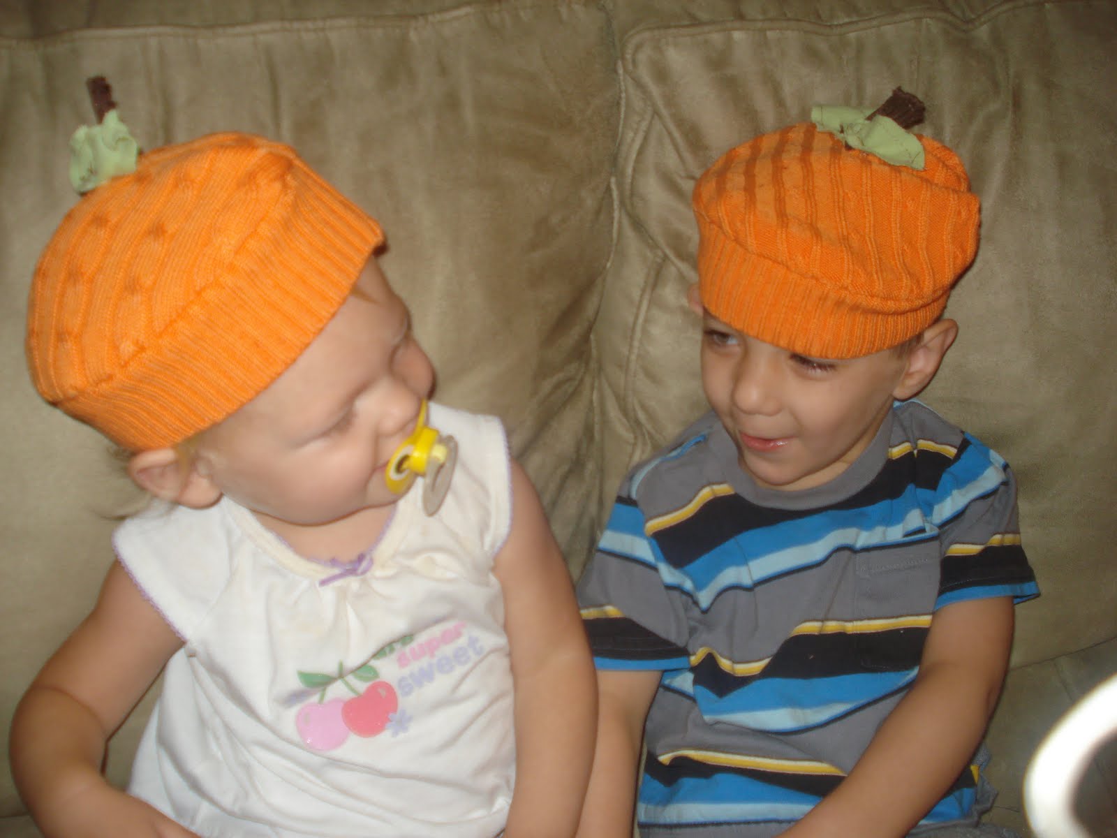 I made pumpkin sweater hats for the kids and I am in love with them! I can’t wait for them to wear these hats to pick pumpkins later this fall. It’s so adorable I can’t stand it.