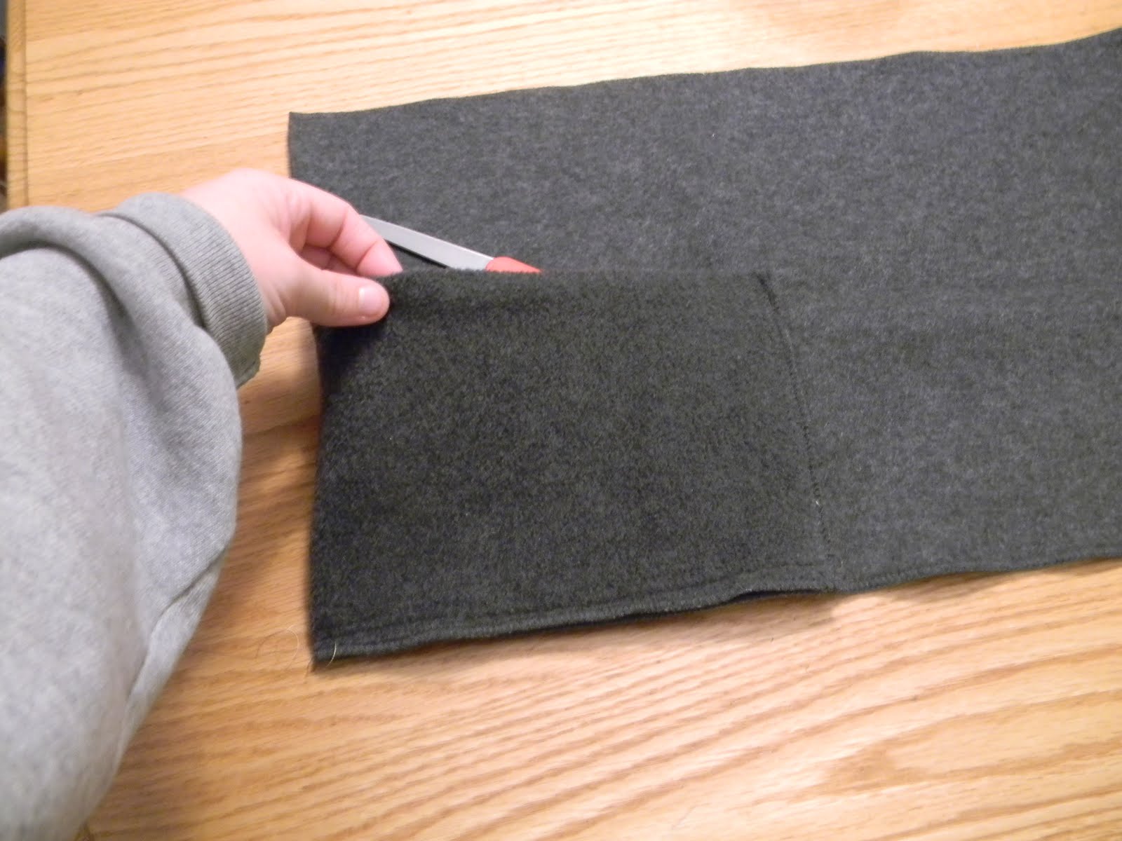 Sew the bottom shut and sew half way up the side. Cut the top half off of the piece that you folded over and you will be left with a little pocket where you can store the pieces when they’re not being used. I used embroidery thread to embroider his name on the pocket later.