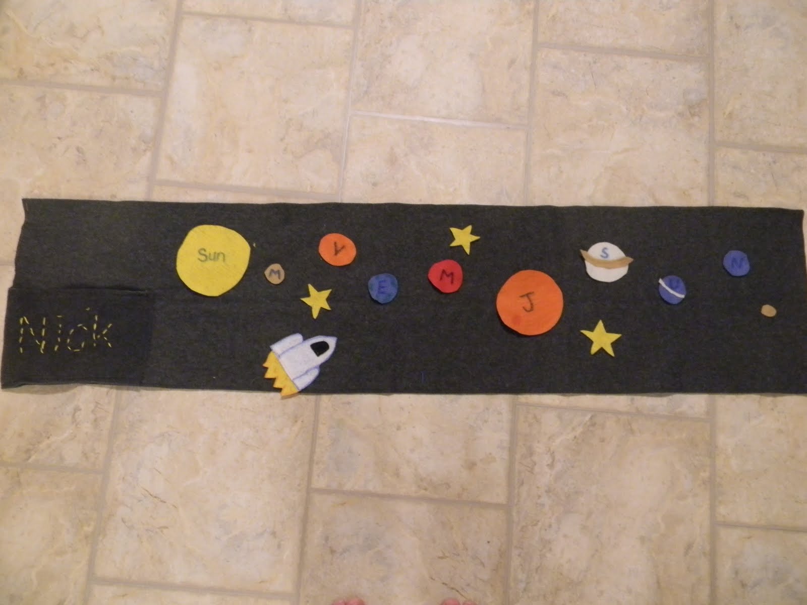 An interactive solar system made from a few pieces of felt and an old fleece scarf.