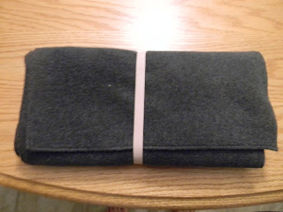 Store the pieces in the pocket & roll it up. I made a little band out of elastic to keep it shut.