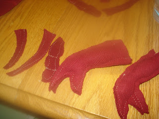 I cut out the pieces and used them as a guide to cut fabric from the sleeves of the sweater.