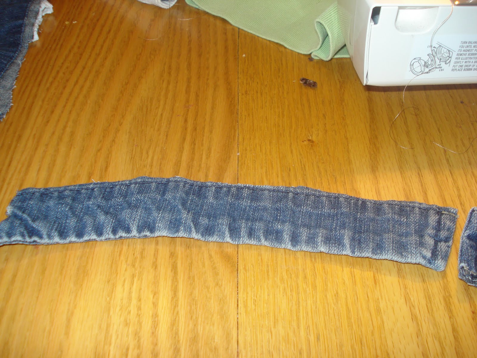 The neck is sort of hard to explain, but I’ll do the best I can. I cut the neck off of the sweater and pined it to the wrong side of the jumper. Then I zig-zag stiched to attach the two piece together. (Again, I wish I knew how to use that Serger that is sitting in its box on the kitchen table.)