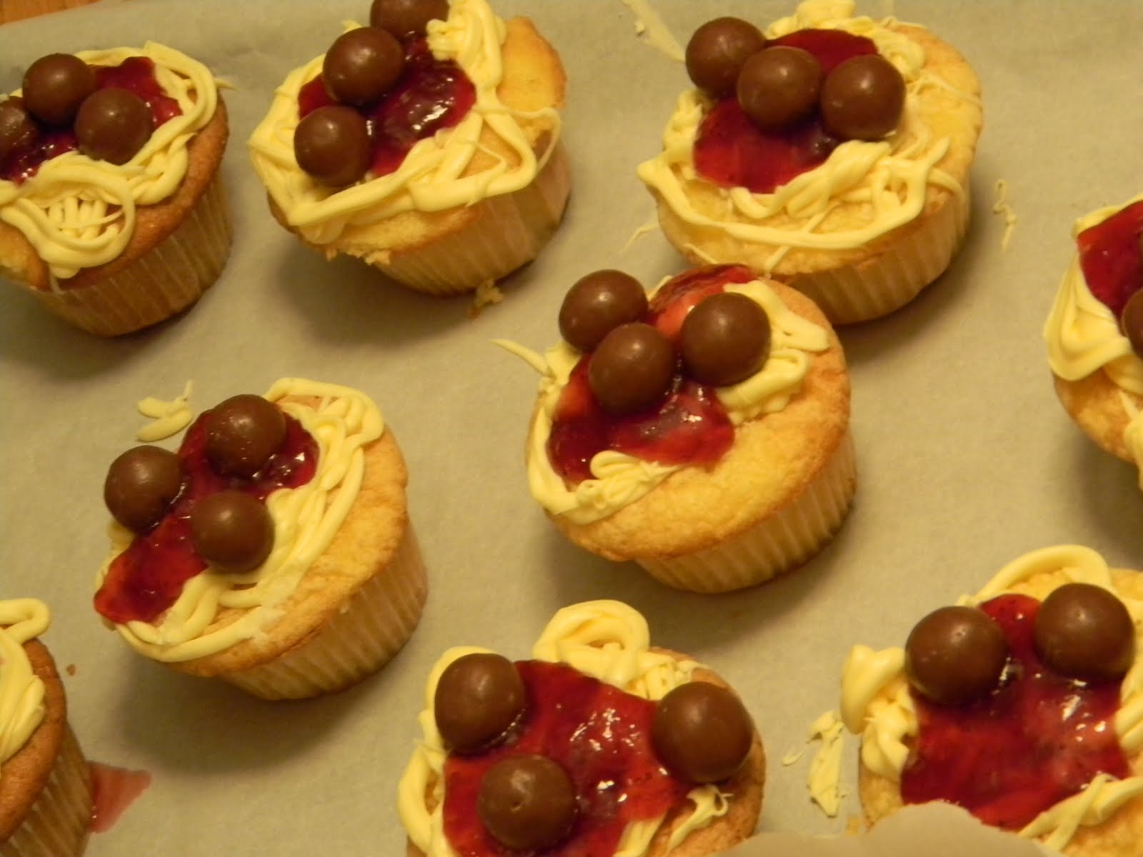Then we made spaghetti & meatball cupcakes, which are just regular cupcakes with the icing squeezed from a ziplock bag to look stringy with strawberry jelly & malted milk balls on top. My grandparents came and brought a cake and we ordered pizza. So there was a lot of this: