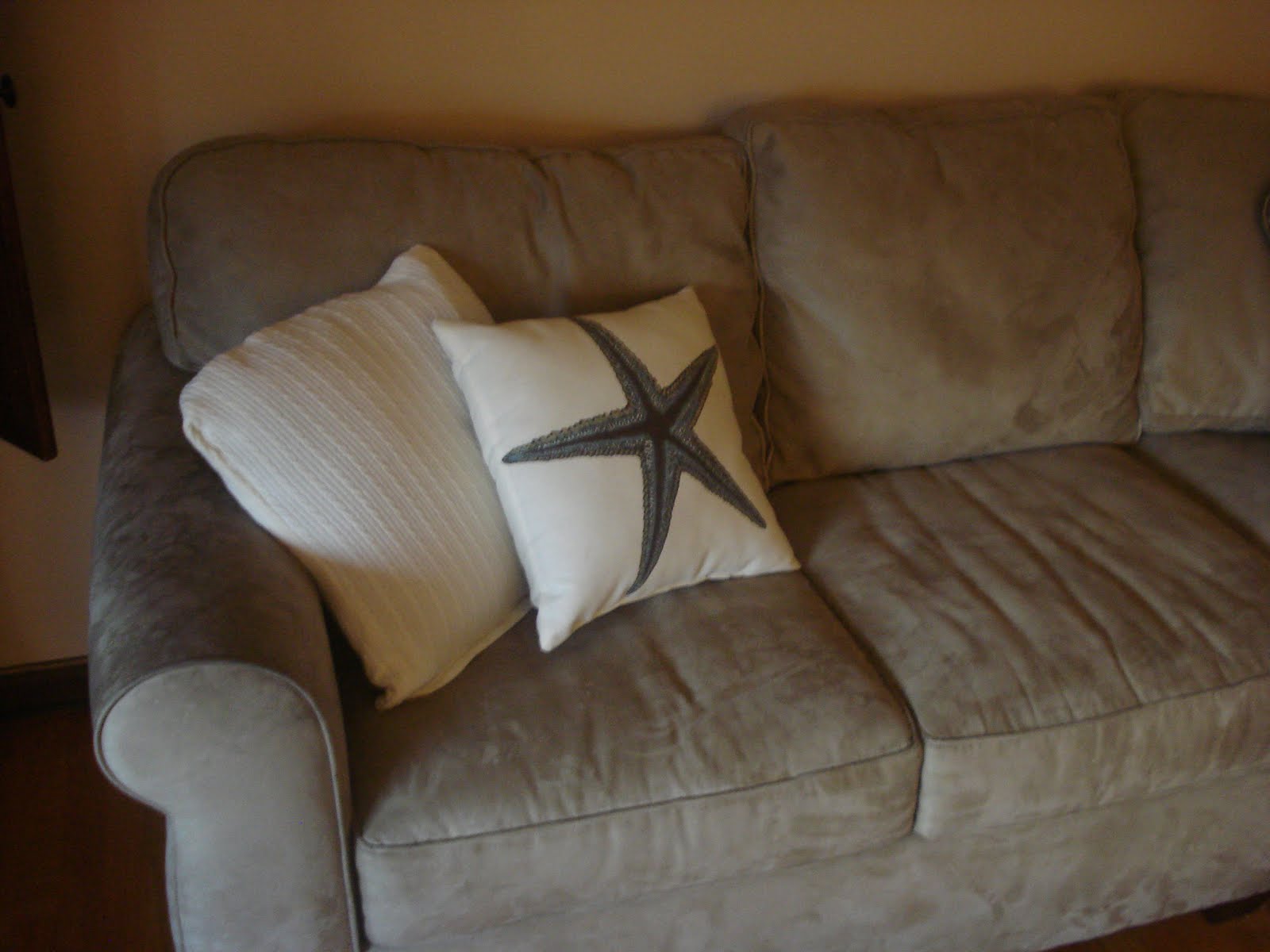 And I got the pillow on the left, pictured here with the adorable starfish pillows I got super cheap a few weeks ago. Remember them? He he, feeling super proud today of the fact that I paid a grand total of $11 for these two pillows while someone else could have ordered them from PB for over $90.